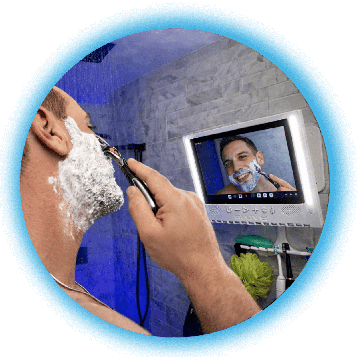 Shave with precision, enjoy powerful sound, and bring your favorite apps into the shower — all while keeping your mirror display fog-free.